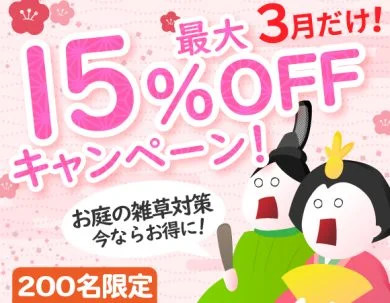 【最大15%OFF! 先着200名限定!】 雑草の悩みを春前に完全解消!雑草対策キャンペーン!! ~防草シートや人工芝をして春の新生活を快適にしよう~