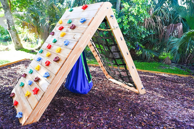 公園に行かなくても思いきり体を動かせる、大型の本格派DIYアイデア。